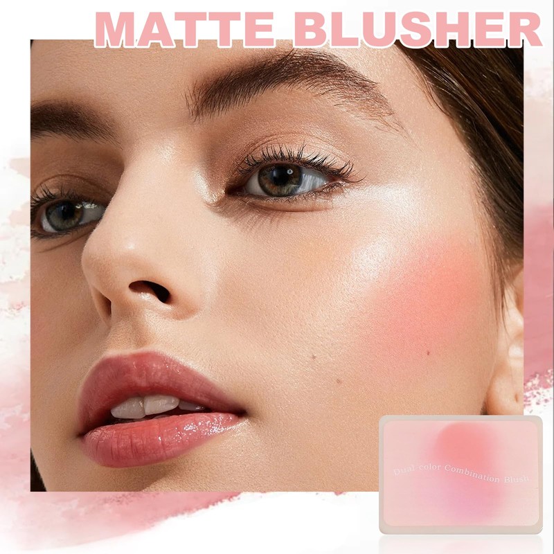 Matte Blush For Cheeks Make Up, 2 Colors Blush Palette with Highly Pigmented Pressed Powder, Long-Lasting Buildable Nude Pink Face Blusher, Highlight Contour All-In-One Palette