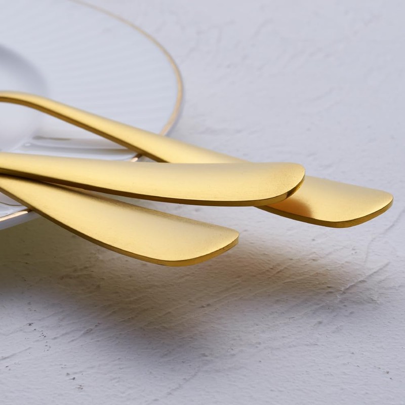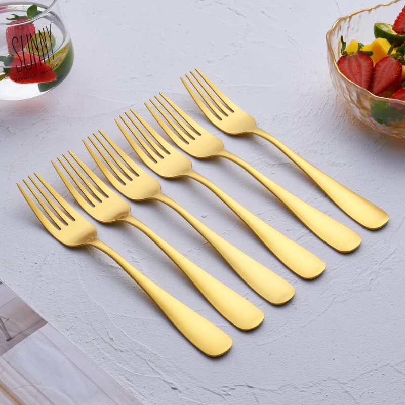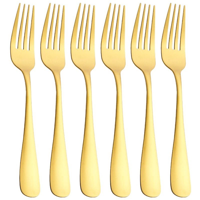 • Matte Gold Finish - Our set of 6 dinner forks features a unique matte gold finish that adds a touch of sophistication to your dining table.Plus, they're dishwasher safe for easy cleaning.