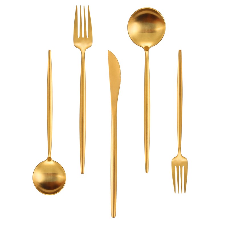 • Modern silverware set: This eating utensils sets have the luxury shape and sleek design, is a sophisticated take on minimalist design. The matte gold finish, special shape and exceptional quality enhance its elegance and modernity.