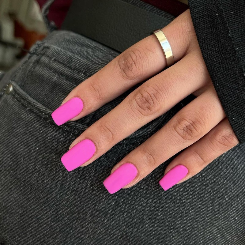 Matte Hot Pink Press on Nails Short Medium Square Glue on Nails Set, Xcreando Summer Square Fake Nails Short Coffin Nail Press ons Gel Medium Length For Women 24 Pcs, Neon Pink