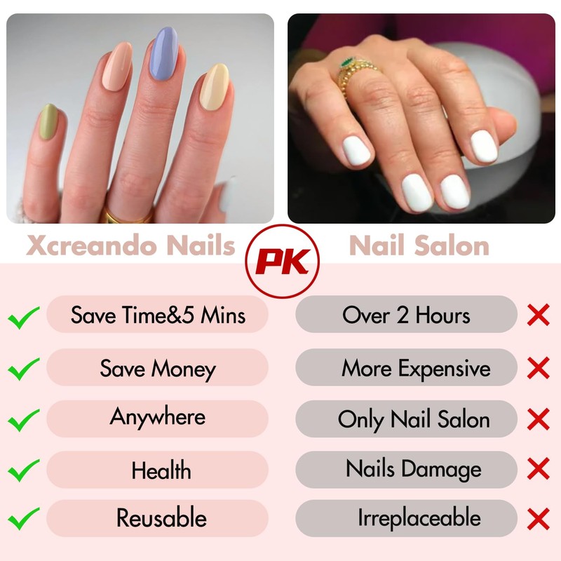 - Perfect Press on Nails Medium Set: Xcreando is committed to producing upgrade false nails medium square nails to mani-lovers.Our medium length press on acrylic nails are crafted from high-quality gel,ensuring they are non-toxic,flake-free,and fade-resistant for exceptional durability.Our acrylic nails fake nails glue on collection offers over 10 vibrant color options,suitable for all skin tones and the changing seasons