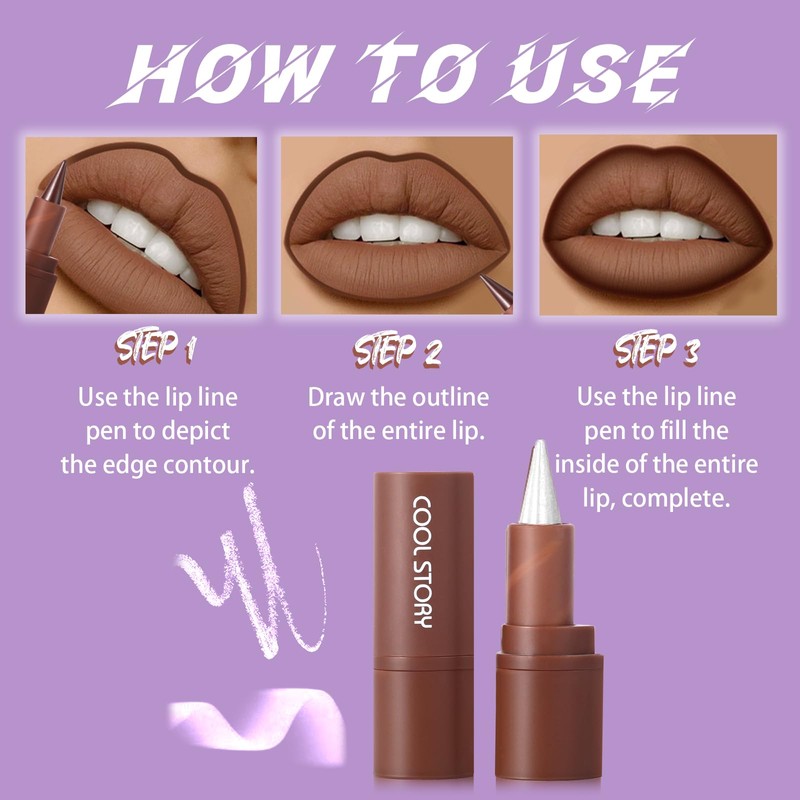 Matte Lip Liner and Lipstick Crayon Shape And Tapered Tip for Perfect Contour and Gradient Effect Waterproof Eyeliner Lip Pencil 3-in-1 Makeup Lip Combo, White 8#