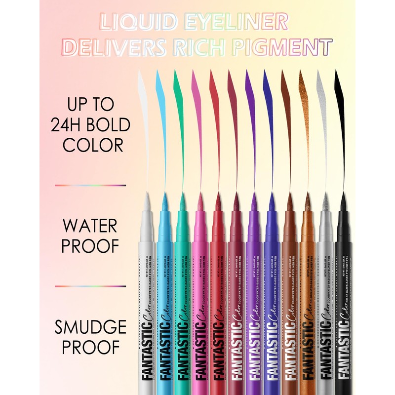 - Matte colours: 12 colours for a vibrant, liquid eyeliner are matte with super high pigmentation, from classic black and white to bold blue, green and more. Perfect for glamorous, parties, shows, or just an everyday look.