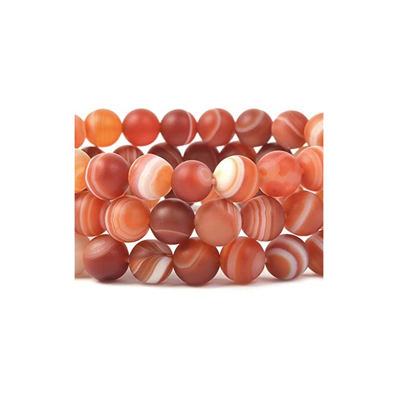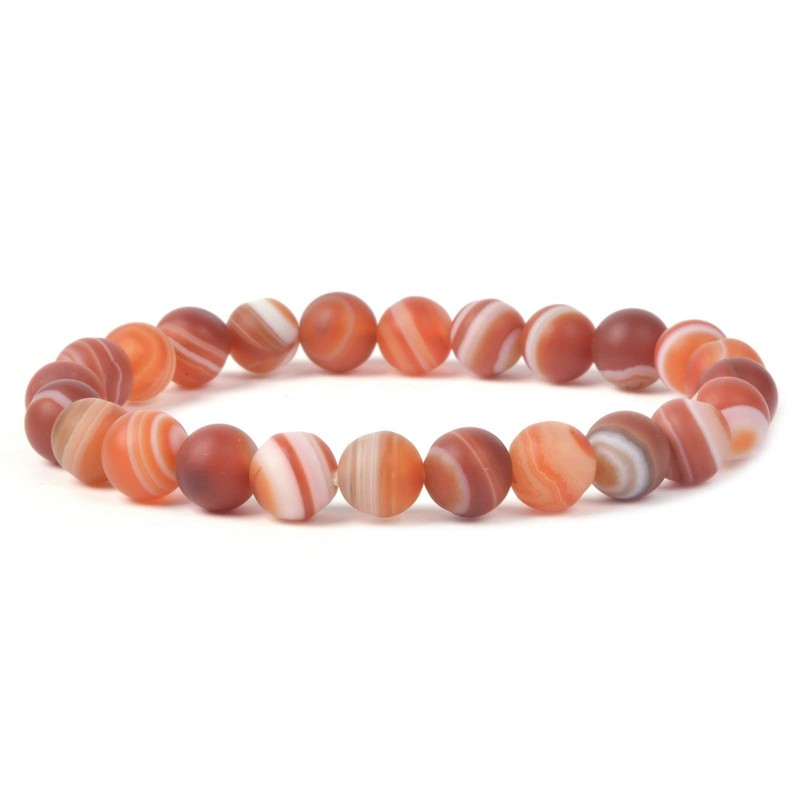 Matte Red Banded Agate Gemstone 8mm Round Beads Stretch Bracelet 7 Inch Unisex