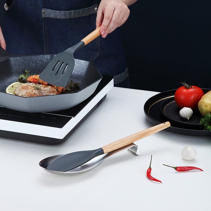 • 2PC Matte Silver Spoon Rest: Classic and Simple Design of the utensils, Would match all your kitchenware and silverware, especial the silver ones.