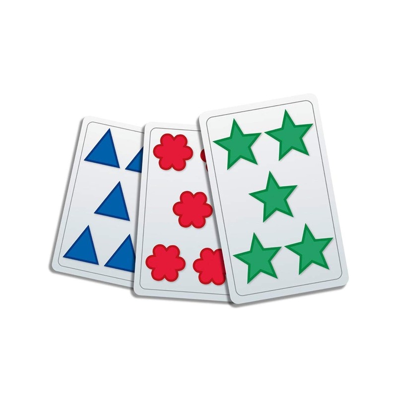 - Using sharp eyes and fast hands, 2 players try to match the shape, count, or colour on their cards to either one of two discard piles