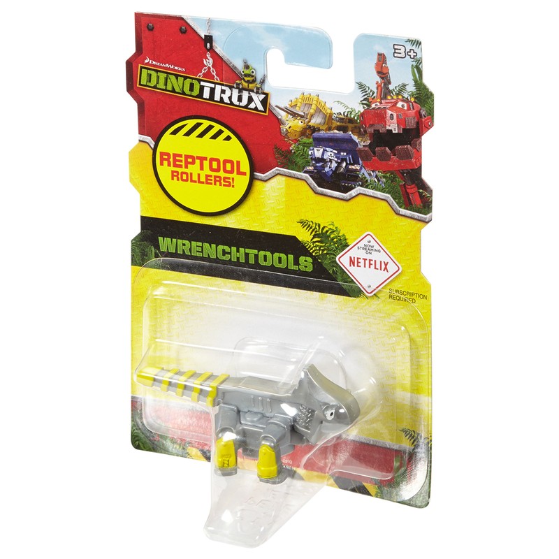 • The Reptool Roller gets rollin' along the floor using a metal ball and interacts with Dinotrux play sets.