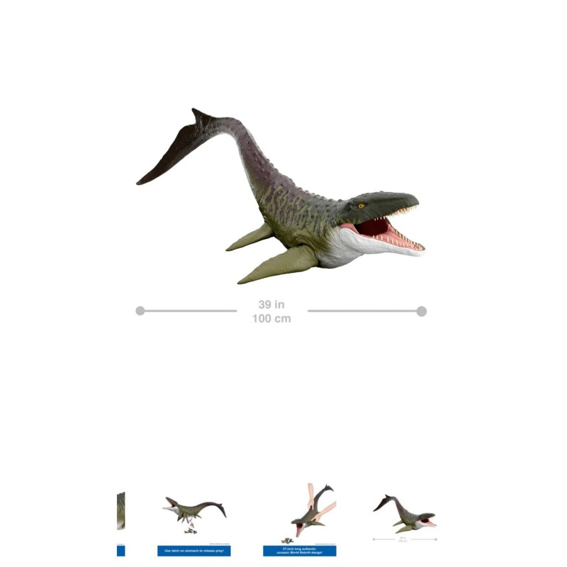The 37" Jurassic World Rebirth Super Colossal Mosasaurus Action Figure is a brand new toy from Mattel, Inc. based on the Jurassic World movie. Standing tall at 37 inches, this action figure of a Mosasaurus is recommended for children aged 4 and up. With intricate details and a large size, this toy is sure to provide hours of imaginative play for young fans of the Jurassic World franchise. Perfect for collectors or kids who love to recreate their favorite dinosaur scenes, this action figure is a must-have for any Jurassic World enthusiast.