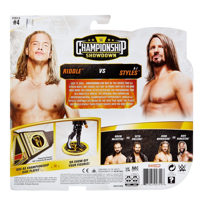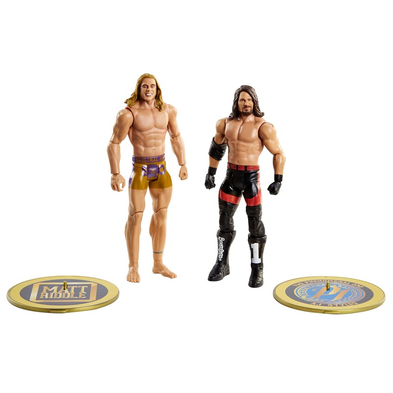 Mattel WWE AJ Styles vs Riddle, Championship Showdown 2-Pack, 6-in Action Figures High Flyers, Battle Pack for Ages 6 Years Old and Up