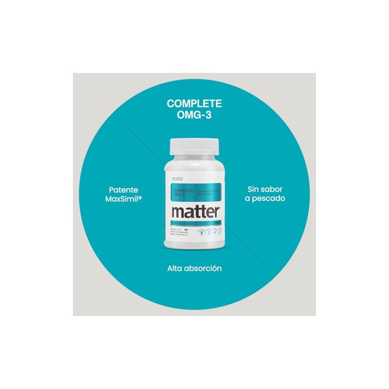 MATTER SMART NUTRIENTS - Complete OMG-3 Suplemento Alimenticio, Omega-3 de alta absorcin con MaxSimill, Aceite de Pescado Concentrado, Sin Sabor -...