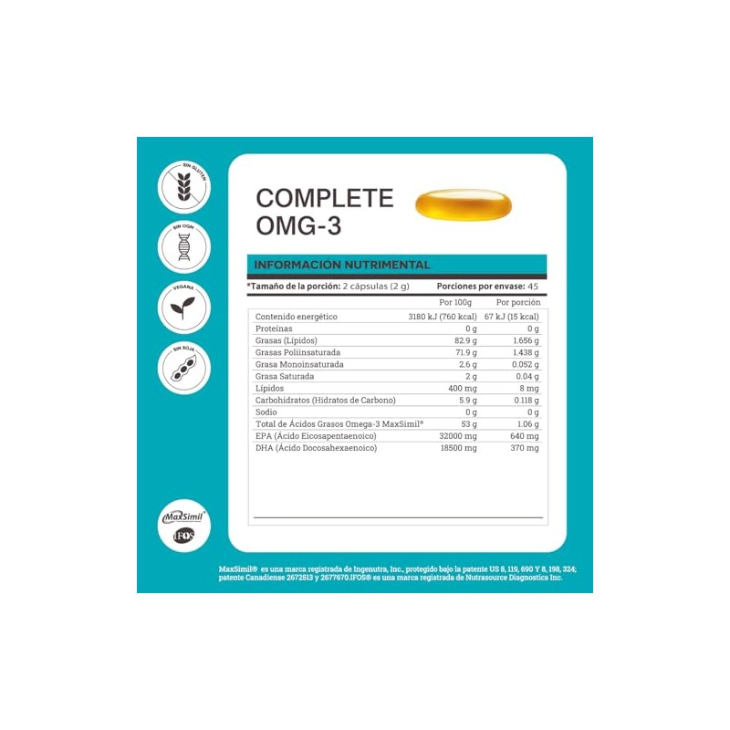 🌟 ⭐ MATTER SMART NUTRIENTS - Complete OMG-3 Suplemento Alimenticio, Omega-3 de alta absorción con MaxSimil®l, Aceite de Pescado Concentrado, Sin Sabor - 400/230 EPA y DHA ⭐ 🌟
