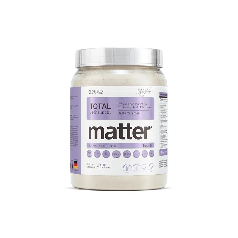 🌟 💄 MATTER SMART NUTRIENTS - Total Beauty Salty Caramel con semilla Sacha Inchi - Proteína en polvo con Probióticos, Enzimas y Ácido Alfa Lipoico - Ideal para Digestión y Cuidado de la Piel - 700g 💄 🌟