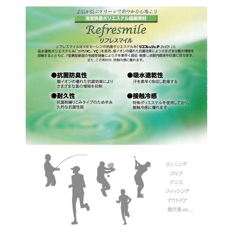 - Material: 100% Polyester, Mesh, Refresmile Water Absorbent, Quick Drying, Antibacterial, Odor Resistant, Cool Touch, Breathable