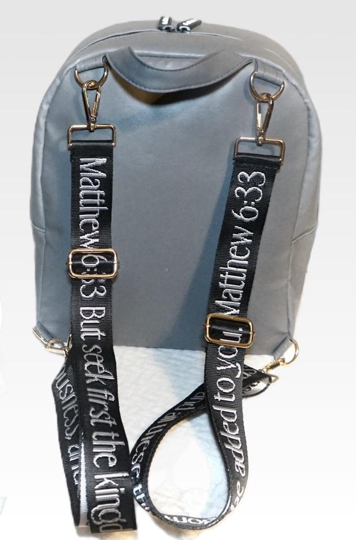 Matthew 6:33 Luxury Backpack with Scripture straps, Grey or Black - Specification: Grey