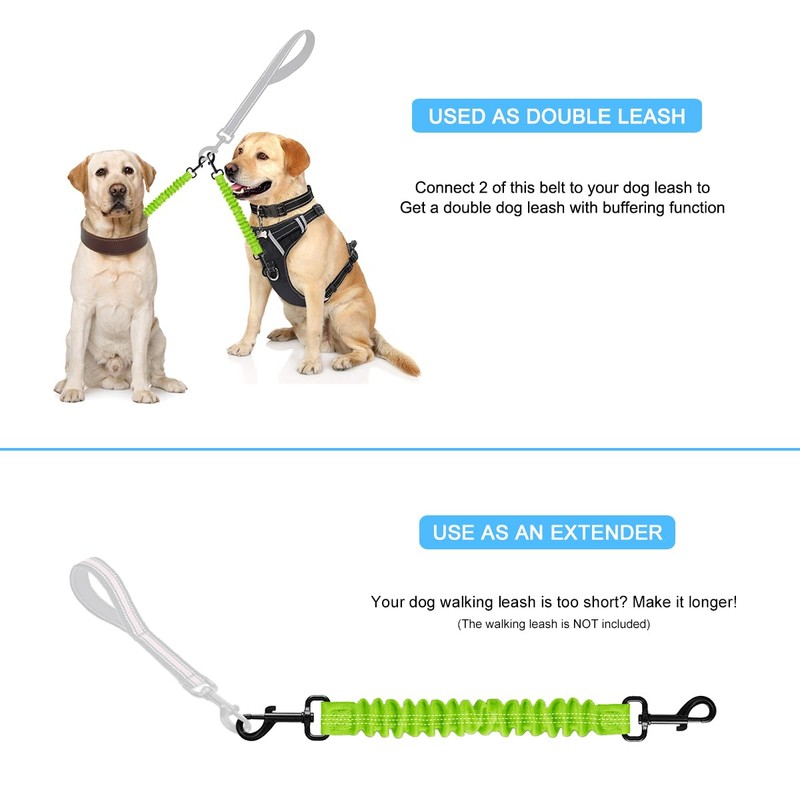 • 【NEED TO WALK 2 DOGS?】Connect 2 of this belt to your dog leash to obtain a double dog leash with buffering function.