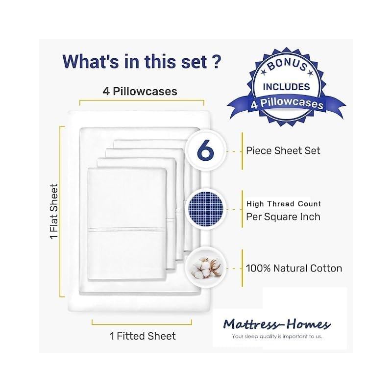 - Product Satisfaction: 6-piece sheet set. We believe in customer satisfaction, and we assure you of excellent product quality and customer service. However, if you are not happy with the purchase or have any query, feel free to contact us anytime. We gladly will help you.