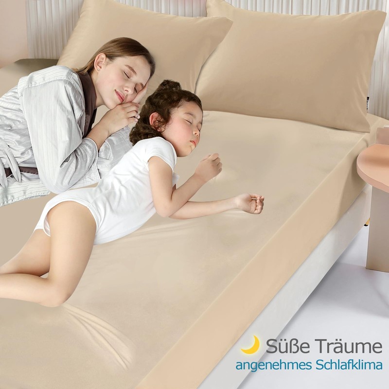 Mattress Protector Waterproof 160 x 200 cm Fitted Sheet Breathable Mattress Topper, Incontinence Pad, Waterproof Mattress Cover Protection Moisture Protection Fitted Sheet - Sand