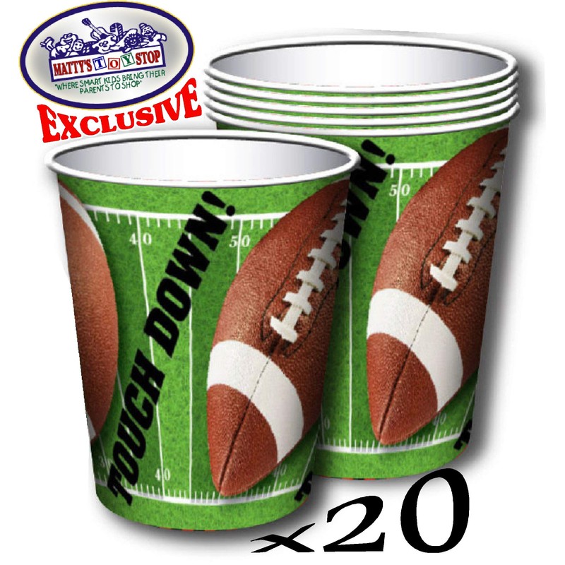 - Deluxe set includes everything you need for a 20 guest Football Themed Party! Includes (20) 9" Dinner Plates, (20) 7" Dessert Plates, (20) 8oz Cups, (20) Napkins & (2) 54" x 108" Table Covers.
