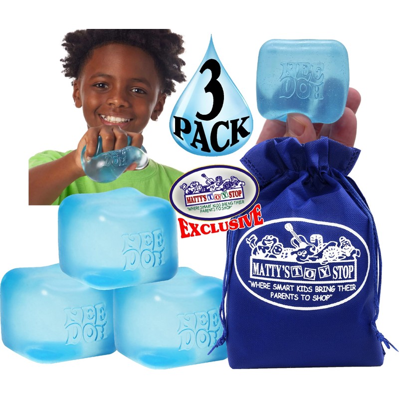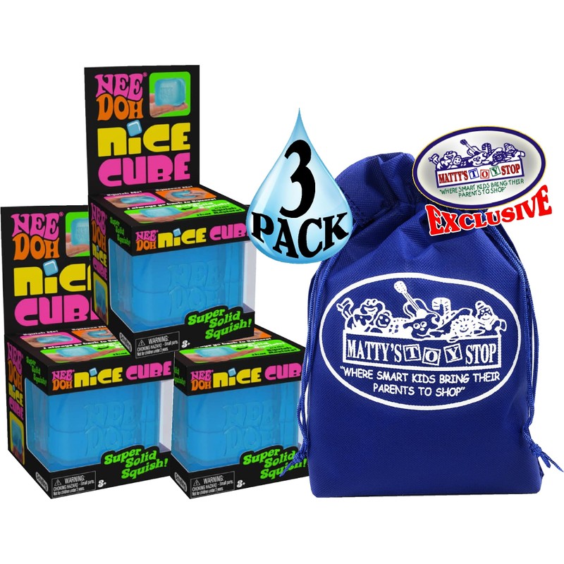Schylling Nice Cube Translucent NeeDoh...Groovy Glob! Squishy, Squeezy, Popping, Stretchy Stress Fidget Cubes Blue Crew Gift Set Party Bundle with Storage Bag - Pack (Blue), is AWESOME! Gift Set Party Bundle Includes Blue Schylling Nice Cube Translucent NeeDohs! Chill out with the coolest fidget toy in town, Schyllings Nice Cube NeeDoh! This satisfying stress cube comes in a translucent blue color, creating a snazzy ice cube effect. Nice Cube NeeDoh is the ideal size for little hands to hold, squeeze, squish and smush. But dont worry, the non-toxic, dough-like material will always bounce back to its original shape. Ideal for on the go fidget toy fun or as an anxiety reliever. Hypoallergenic and completely safe, it contains no BPA, phthalates or latex; cleans easily with soap and water. Perfect for schools, party favors, special needs, the office, stress relief and so much more! A great fidget toy; appropriate for those with ADD, ADHD, OCD, Autism and anxiety; helps promote focus, attention and centering. For ages and up - Perfect for the family! - Dimensions for each: ." x ." x ." - Includes Matty's Toy Stop Storage Bag