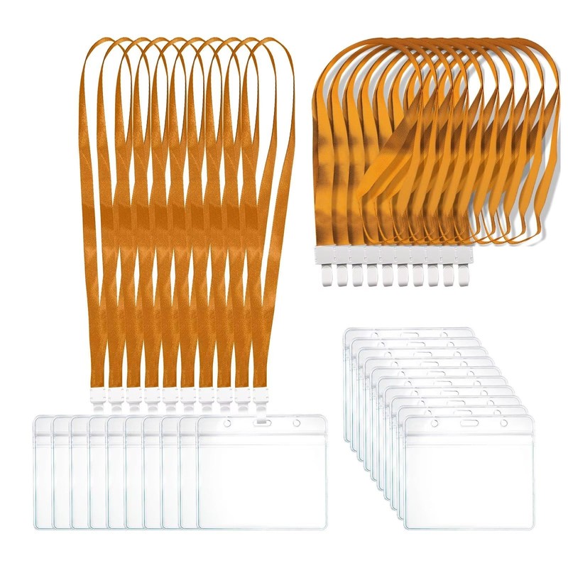 Matunoki Name Holder, ID Card Holder, Name Card Holder, Neck Strap, Staff, Employee ID, Business Card, Exhibition, Path, Soft Case, Waterproof, Transparent, Horizontal, 35 Pieces, Orange