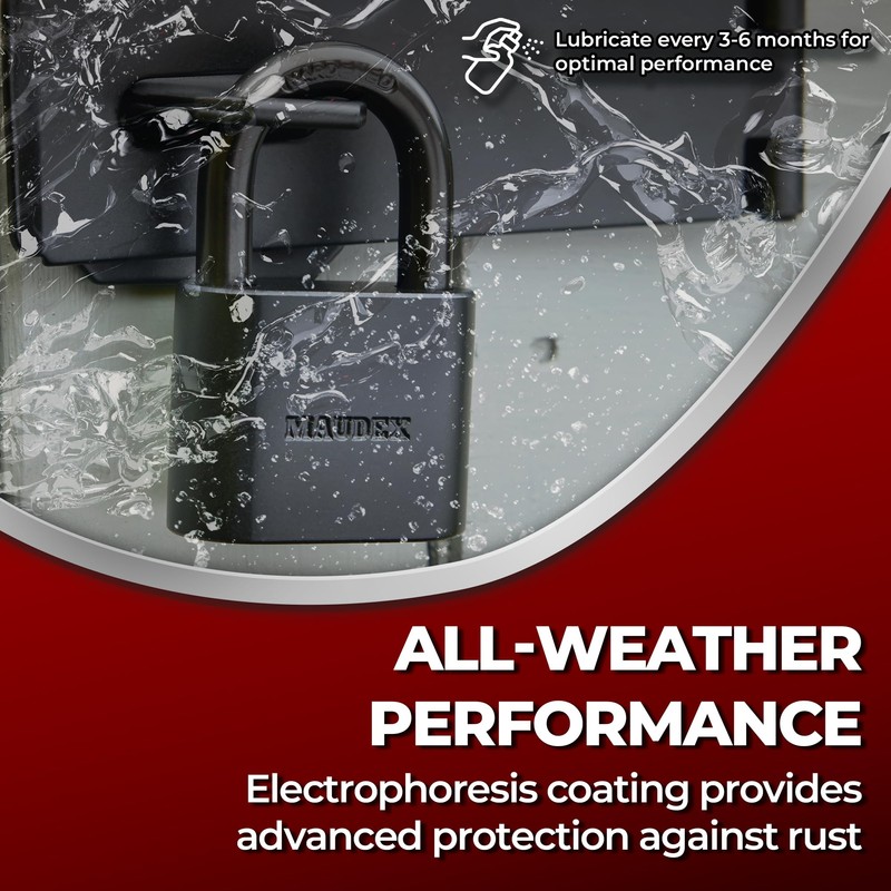• WEATHER READY DESIGN - Built to handle various weather conditions with effective electrophoresis coating technology. This durable, robust lock ensures consistent performance in different climates and provides year-round protection for your property and belongings.