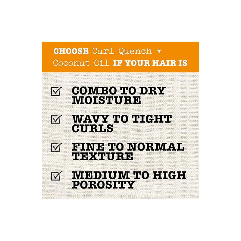 - ESPECTACULAR AROMA. El shampoo Curl Quench + Coconut Oil tiene un irresistible olor que te dura todo el día. El aroma a agua de coco, naranja blanca y frijol de tonka te hará sentir cómoda y especial en todo momento.