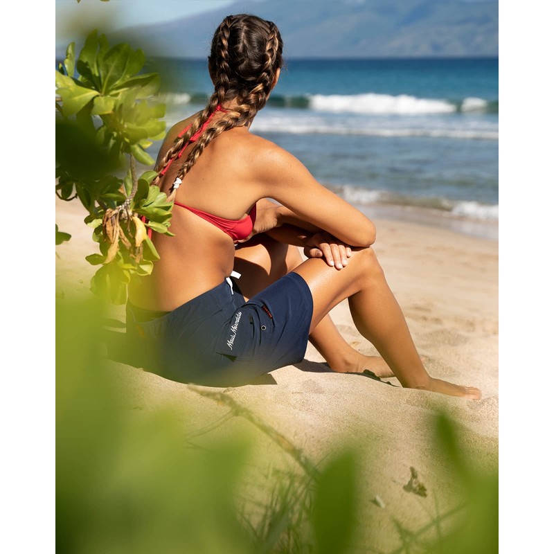 Maui Rippers Women’s 4-Way Stretch 9” Swim Shorts Boardshorts (16, Navy)