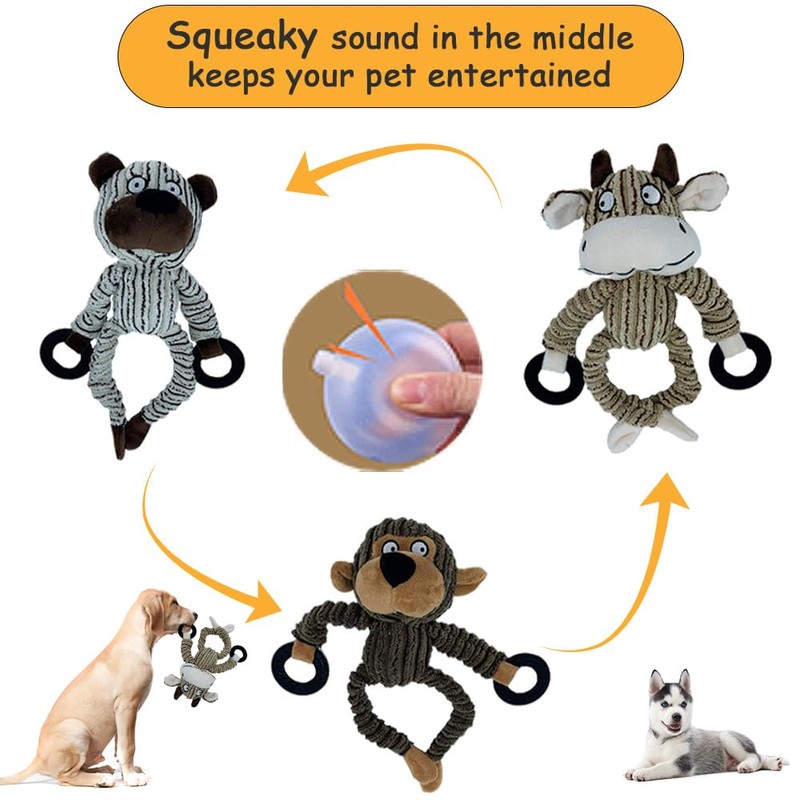 Maujii Dog Toys - Puppy Chew Toys for Teething - Interactive Squeaky Toy for Small, Medium & Large Dogs - 3 Pack Plush Dog Toy Set