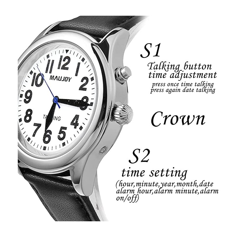 - LOUD & CLEAR ENGLISH VOICE - Clearly hear the time, day and date or alarm time spoken in a pleasant and updated masculine voice. If you are searching for talking watches for the blind, this talking watch will meet your needs!