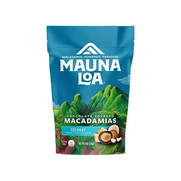 Mauna Loa Premium Hawaiian Chocolate Covered Macadamia Nuts, Milk Chocolate Coconut, Cocoa Dusted, 8 Oz Bag (Pack of 1)