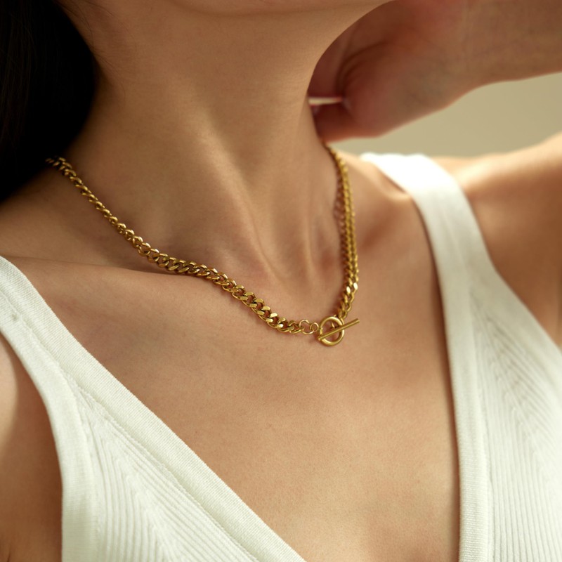 - Women Toggle Necklace Size: The length of gold chain necklace measures 16.5", and the front toggle clasp makes it ideal for wearing alone too