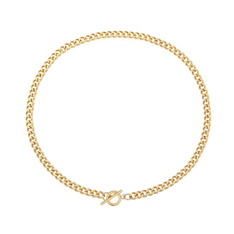 Mauzew 18K Gold Plated Cuban Chain Necklace for Women 6 mm Curb Chain Toggle Necklace Dainty Layering Gold Chain Everyday Trendy Jewelry