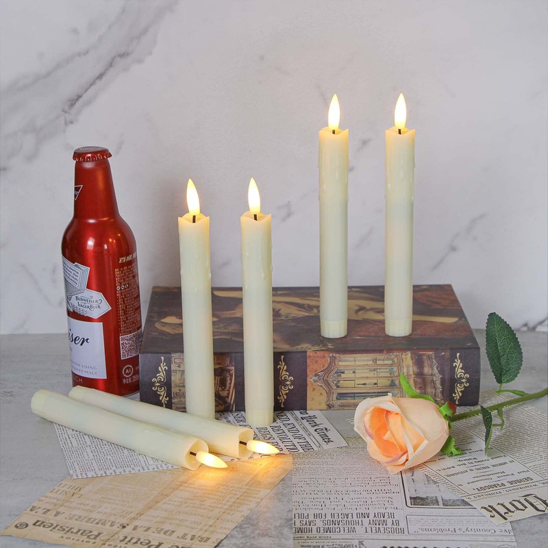 - Package Information: Six Ivory Flameless taper candles, one manual, two remote control