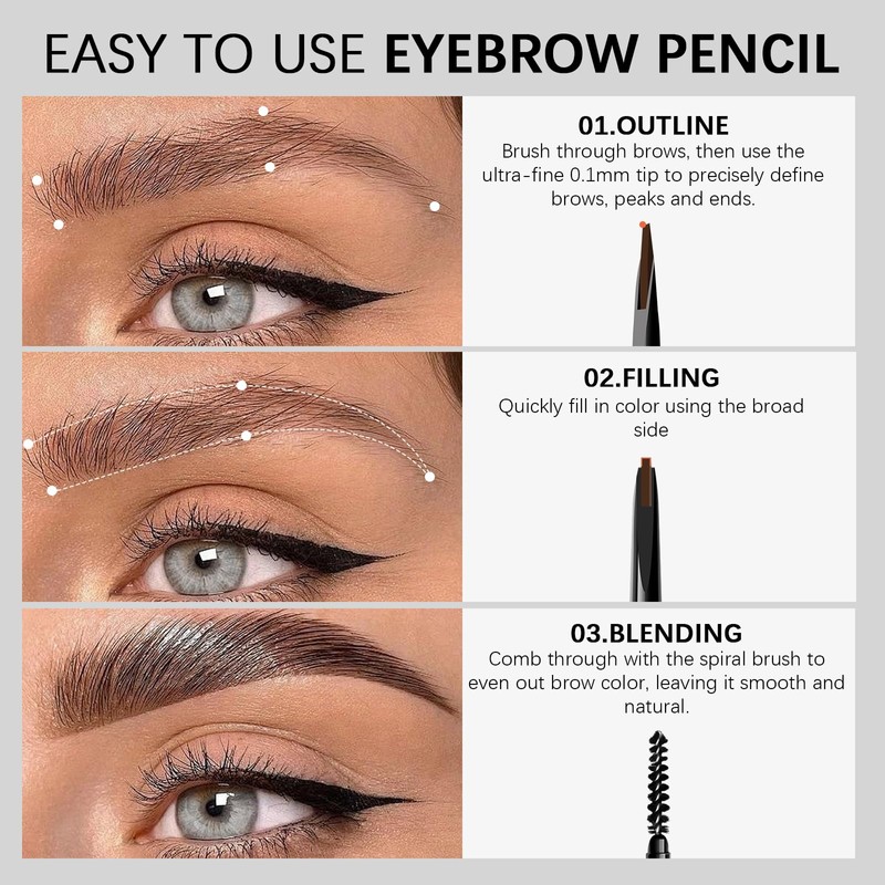 - 0.1mm Ultra-Fine Mechanical Pencil: a stretchable microblading eyebrow pencil with a 0.1mm ultra-fine tip that allows you to fill sparse areas and gaps with realistic, fine strokes, as delicate and distinct as hair strands, giving you perfect and natural eyebrows.