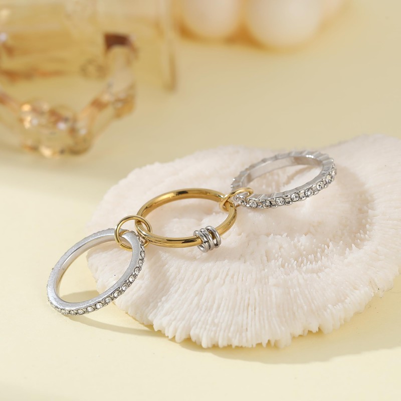 - Stackable Rings for Women:3 bold mixed-metal rings, including 2 18K gold-plated bands and 1 cubic zirconia silver ring, elegantly linked by a delicate gold connector. Whether worn individually or stacked together, these rings enhance both your everyday style and special occasion looks effortlessly.