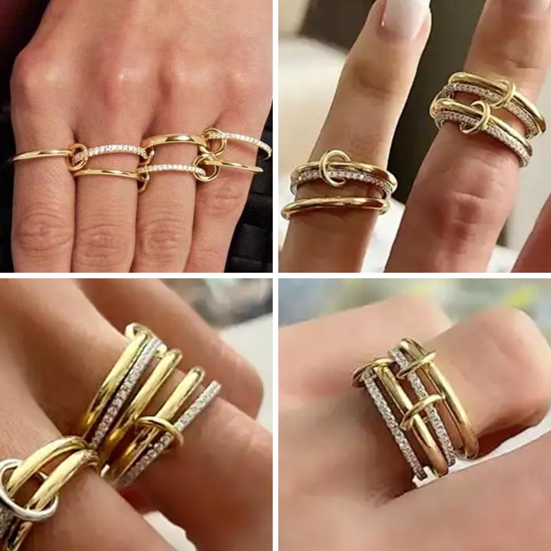 Maverileisure Gold Silver Stackable Rings for Women Non Tarnish 18k Gold Plated Cubic Zirconia Ring Two-Toned Mixed Metals Stack Interlocking Multi-Link Connected Thumb Rings Jewelry Gift Size 6-10