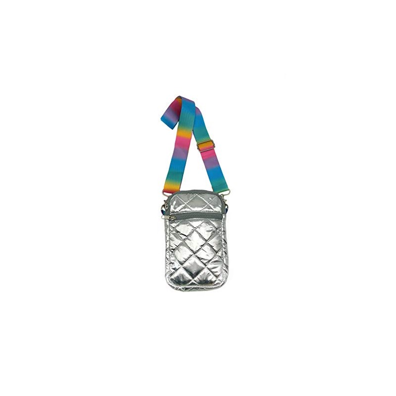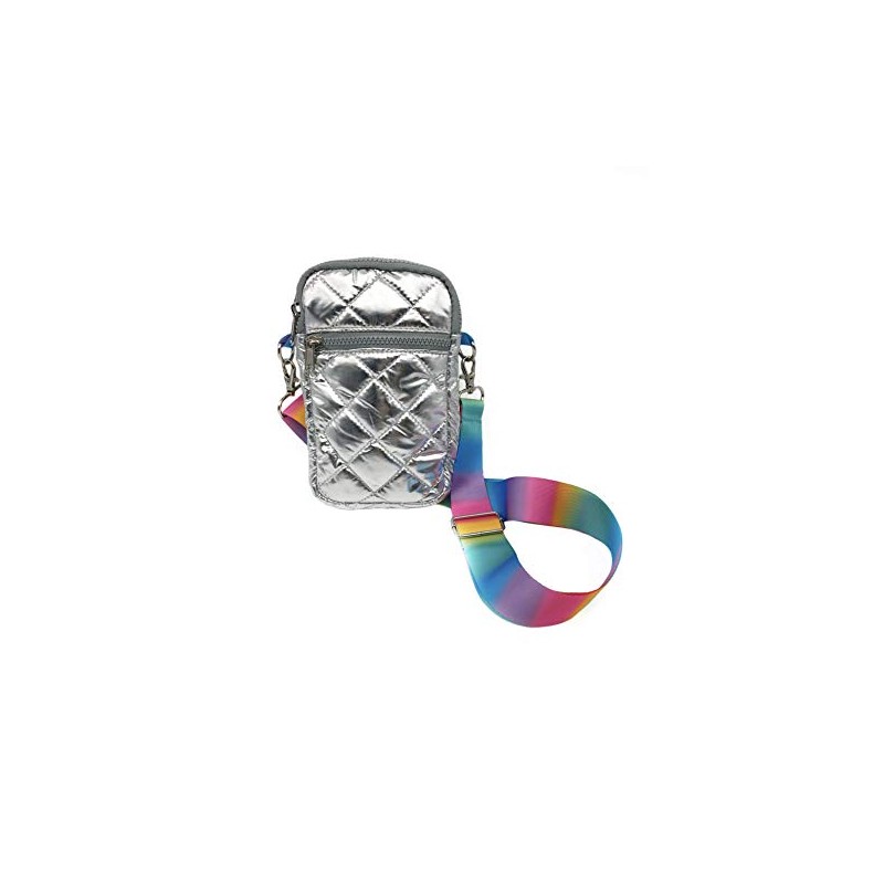 Mavi Bandz Silver Puffer Messenger Purse Phone Bag with Tie Dye Crossbody Strap