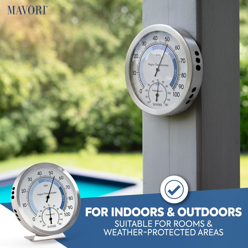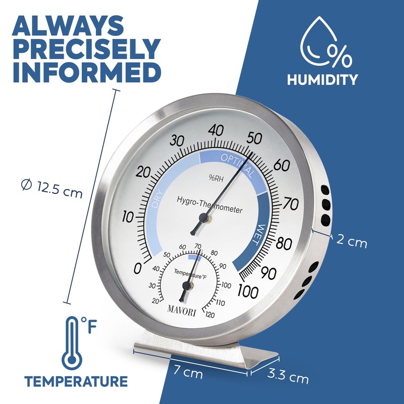MAVORI Analog Hygrometer – Thermometer Hygrometer for Indoor – Premium Stainl...