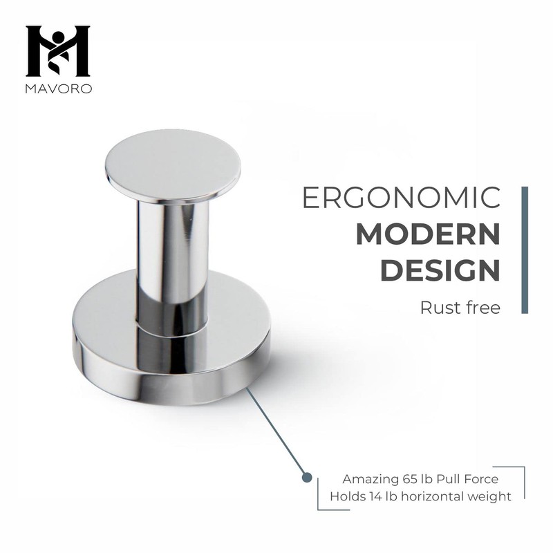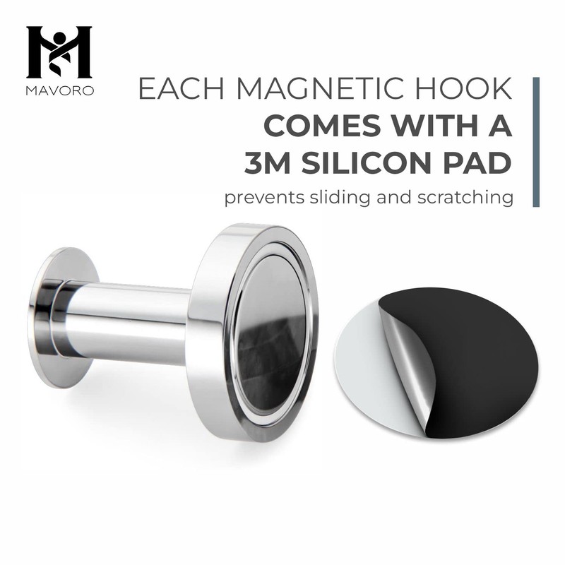 Mavoro Strong Magnetic Hooks for Hanging Coats and Bags. Set of 4 Chrome Magnet Hooks Heavy Duty Magnets, Neodymium 52 Rare Earth Magnets. Push Pin Style Magnet Hook for Refrigerator, Locker etc