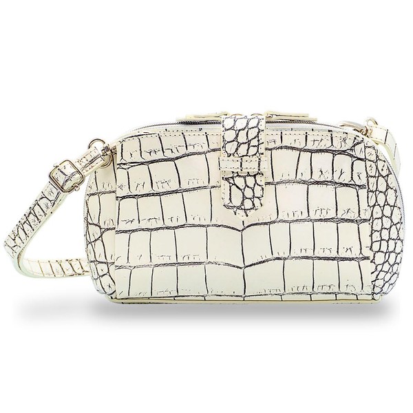Max Cosmetics Japan ITABELY Multi-functional Shoulder Bag, Wallet Pochette, Genuine Leather, Crocodile Embossed, beige (vanilla)