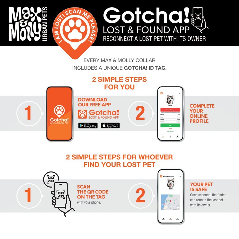 - SMART: Each collar contains its own GOTCHA! Pendant with individual QR code. So you and your four-legged friend can be used with our free Gotcha! Quickly reunite Lost & Found app should it get lost