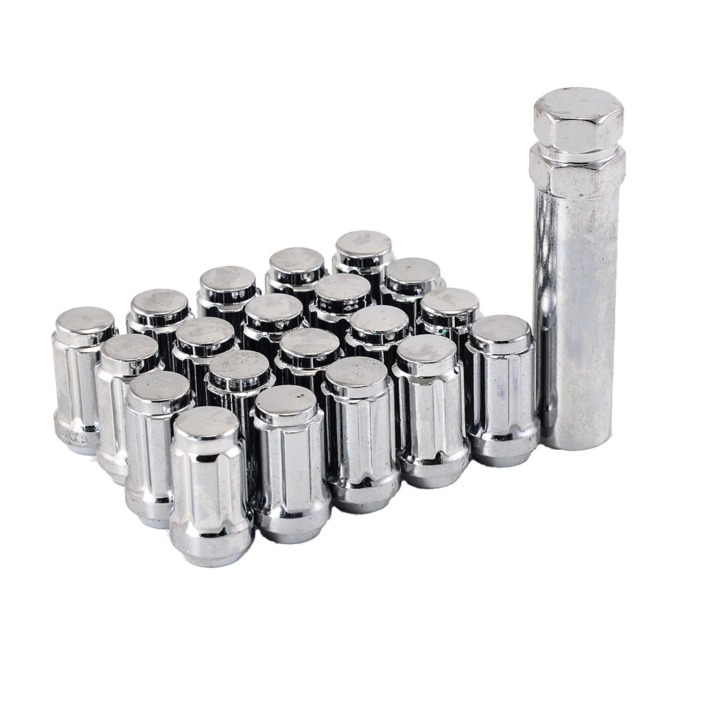 Max Motosports (20) 12x1.5 Chrome Spline Tuner Racing Lug Nuts w/Key for Honda Acura Chevy Ford