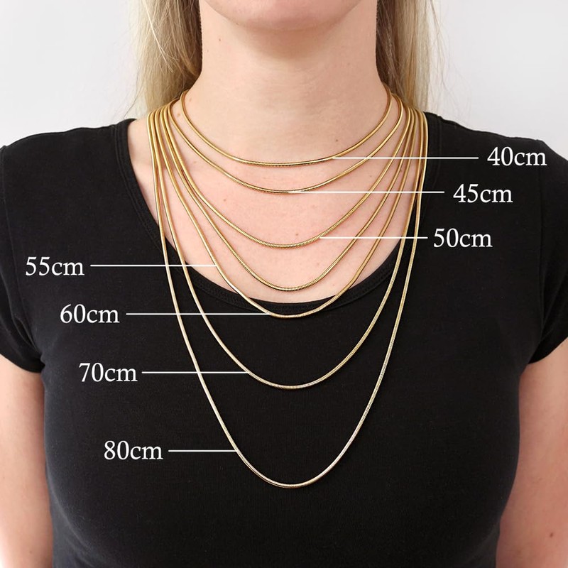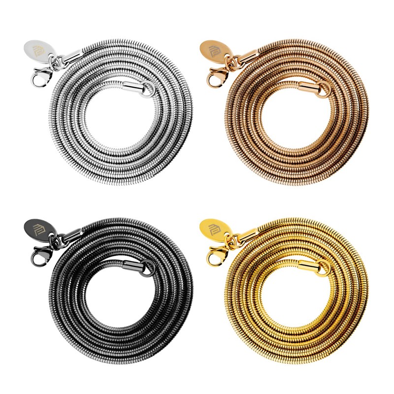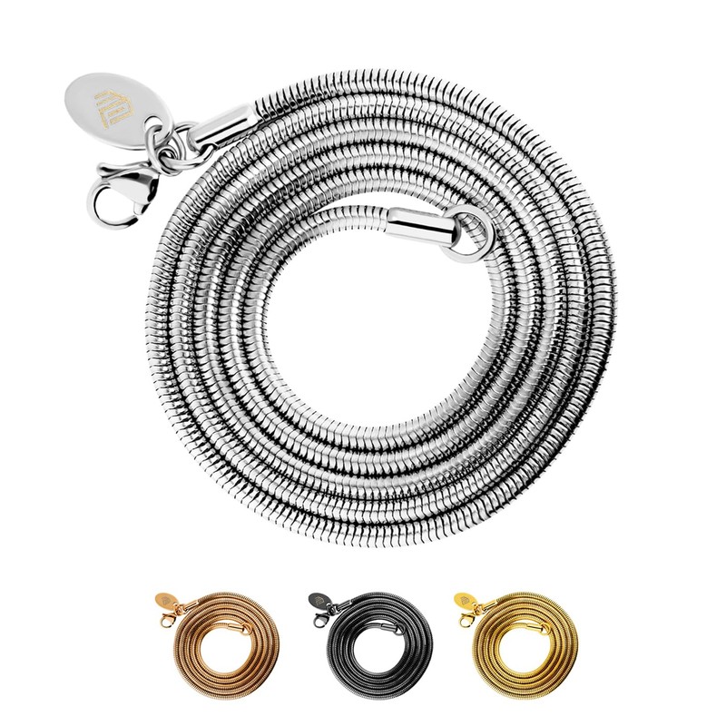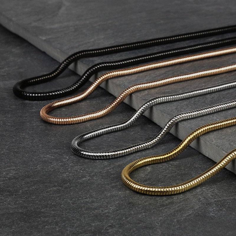 Max Palmer snake chain made of stainless steel in 4 different colours. 3 thicknesses and 7 different lengths.