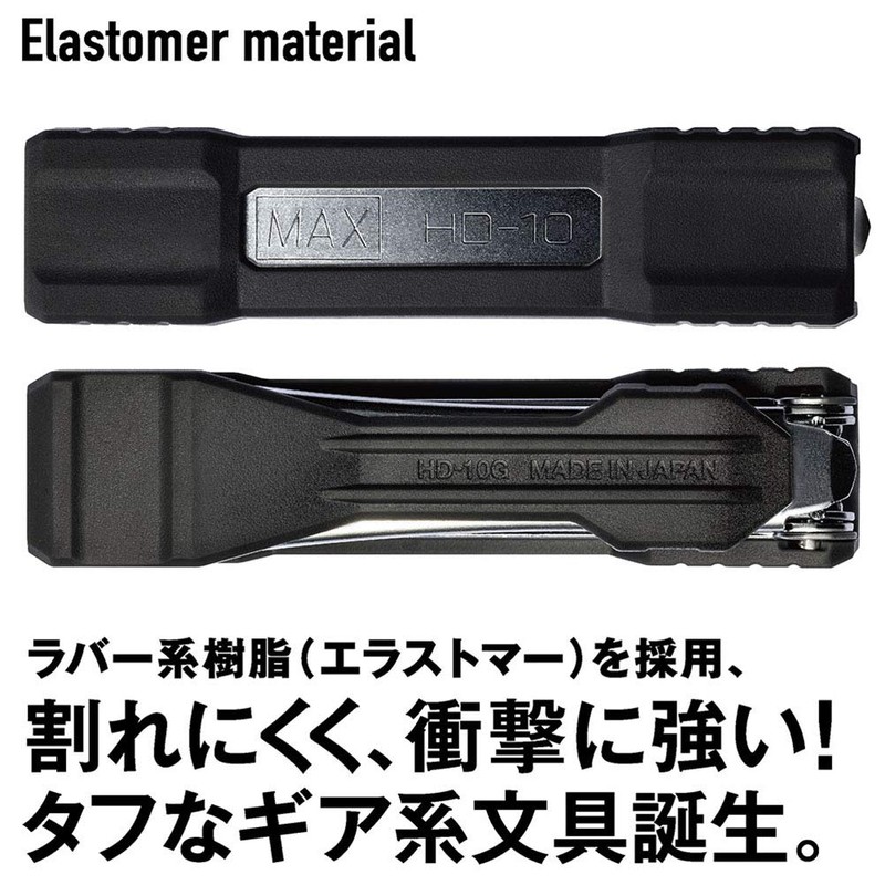 - The "HD-10G" gear stapler adopts a soft grip on the body and is resistant to drops and provides a comfortable fit to your hand