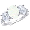 MAX + STONE 10K White Gold Opal Rings for Women | October Birthstone Ring with Opal Gemstone | Hypoallergenic Three Stone Gemstone Gold Ring | Opal Statement Cocktail Rings Size 7