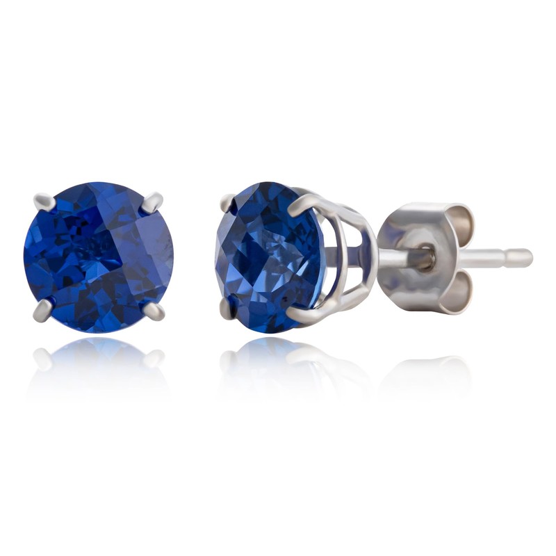 MAX + STONE 10k White Gold Round Checkerboard Cut Created Sapphire Stud Earrings (6mm)