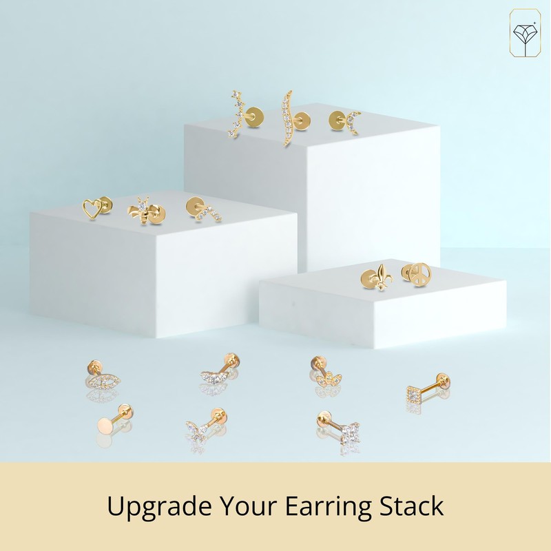 - 14K SOLID GOLD: This cartilage earrings stud is crafted entirely out of 14k real gold. To ensure long-lasting quality it is not gold plated, gold filled, steel or vermeil. These cartilage earring gold is stamped with "14k" for authenticity.
