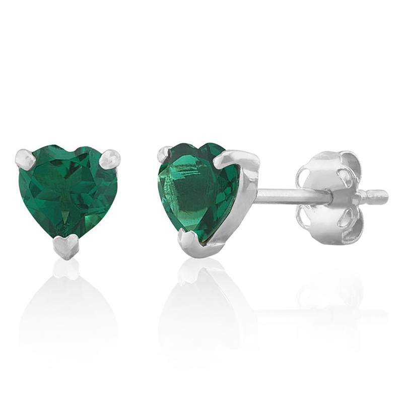 - QUALITY & AUTHENTICITY - Premium quality created emerald gemstones measuring 5 millimeters each. Each heart-shape gemstone is masterfully cut and secured by a 3-prong setting. Because of the natural characteristics of gemstones, stone shades may vary. Emerald is the birthstone of May.