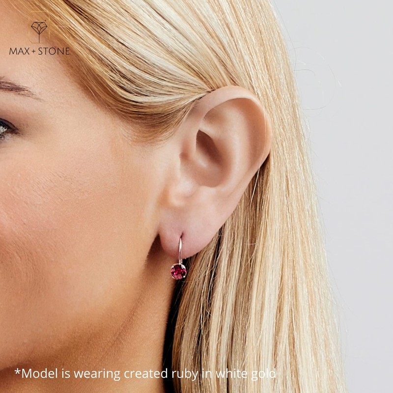 - EYE CATCHING CREATED EMERALD DANGLE EARRINGS - A May birthstone, the Taurus in your life will be thrilled when you give them these created Emerald earrings in 10k white gold. Any May birthday woman will feel special with these earrings that celebrate their creativity and passion