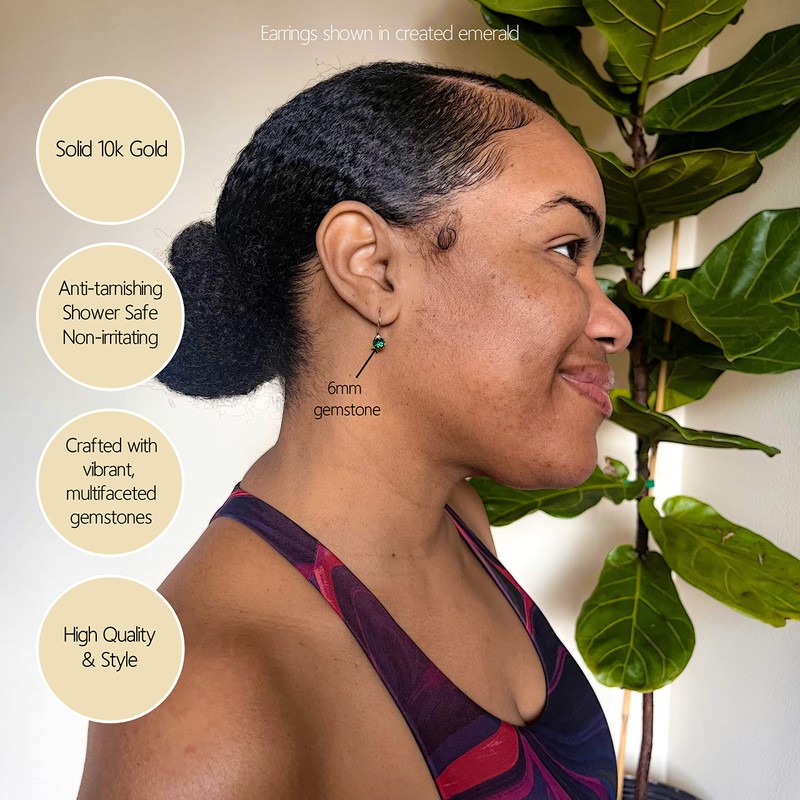 - QUALITY MATERIALS - Premium quality gemstones each with a center stone that measures 6 mm. Each gemstone is masterfully cut and secured by a prong setting. Because of the natural characteristics of gemstones, stone shades may vary. All parts, including backs, are crafted in solid 10k gold. Buy with confidence knowing that each earring has the "10k" stamp and our Hallmark stamp as a symbol of authenticity and a promise of exceptional quality